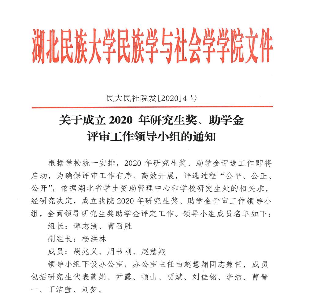 关于成立2020年研究生奖、助学金评审工作领导小组的通知