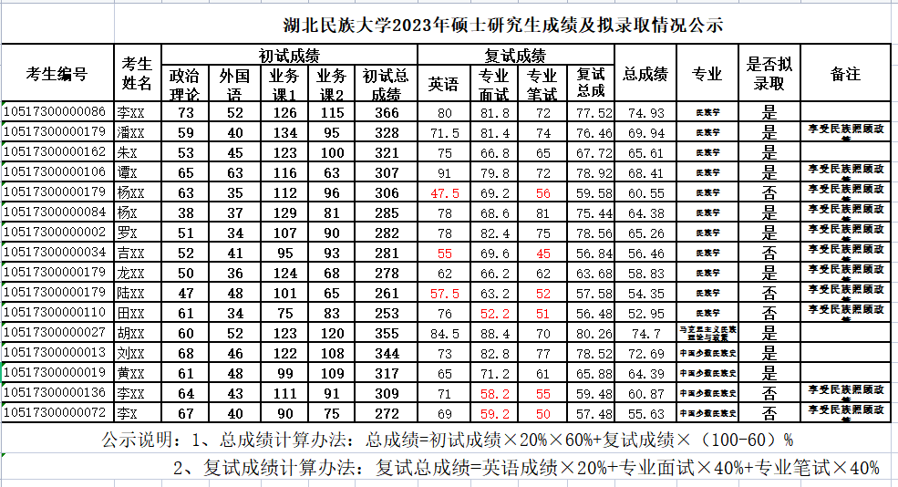 jinnian金年会民族学与社会学学院2023年硕士研究生第一志愿考生成绩及拟录取情况公布
