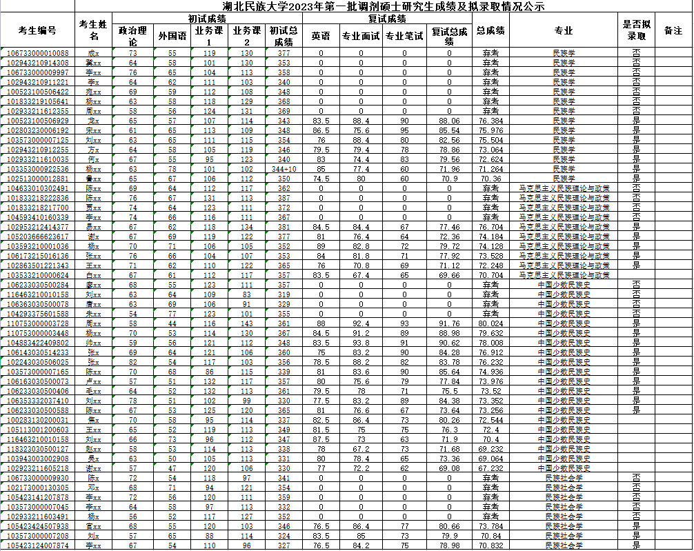 jinnian金年会2023年第一批调剂硕士研究生成绩及拟录取情况公示