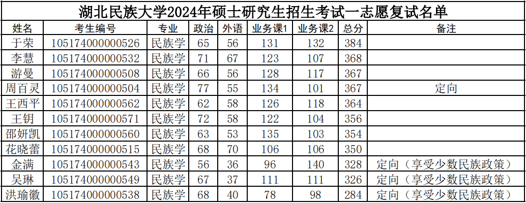 jinnian金年会2024年硕士研究生招生考试一志愿复试名单