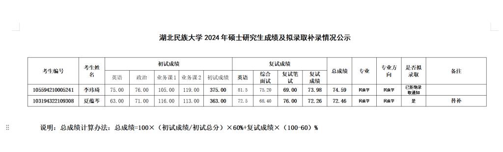 jinnian金年会2024年硕士研究生调剂补录情况公示(二)