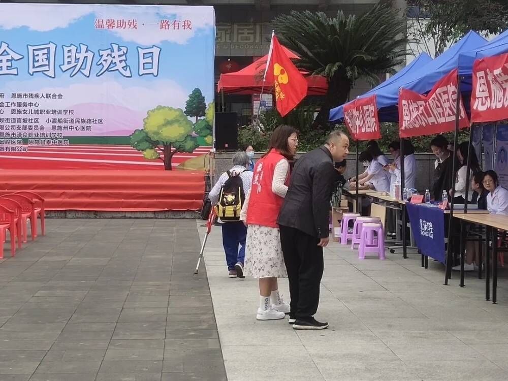 (通讯员 张冰)在第三十三次全国助残日即将到来之际,为丰富残障人士精神文化生活,弘扬主旋律、传播正能量,5月19日,我院本科生党支部组织“民社青年志愿服务队”队员积极参加恩施市第三十三次全国助残日活动。