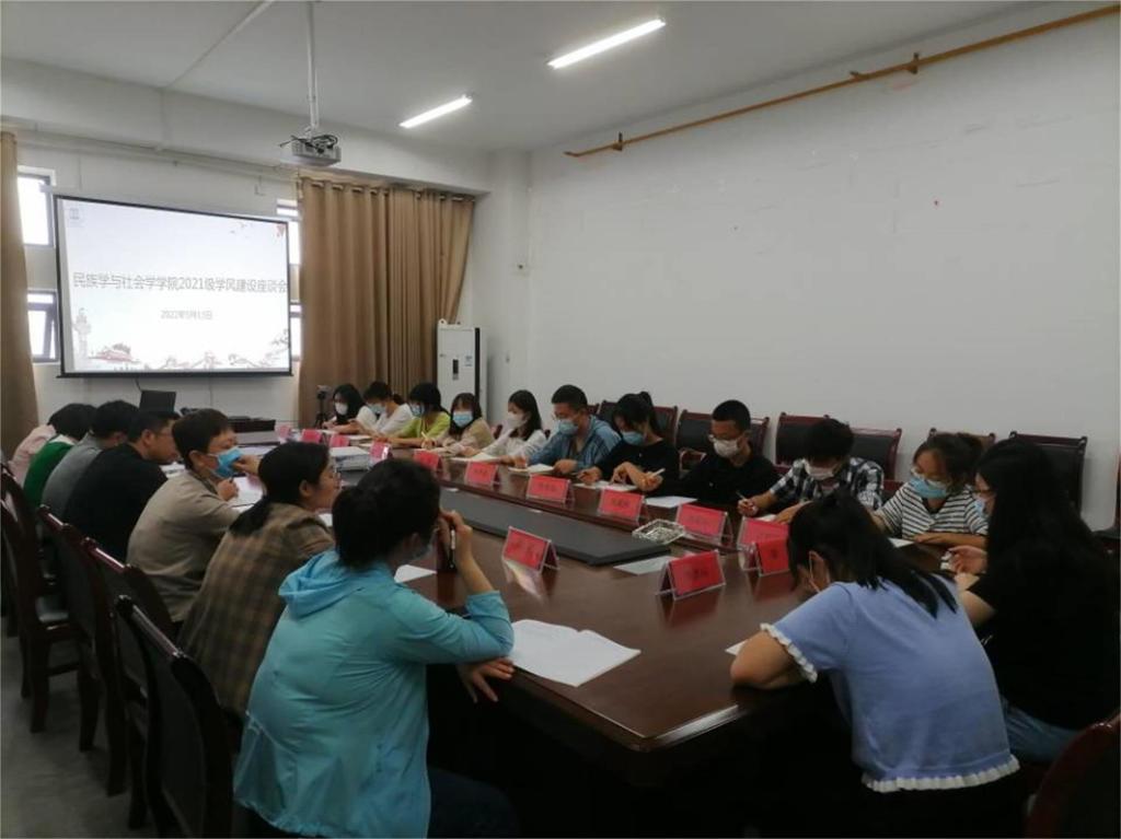 会议由张冰老师主持。2021级学生代表就学生对课程的态度、英语四级备考状况等问题展开交流。认真倾听完各位学生代表的发言后,在座老师针对学生的学习情况提出建议。2021级班主任廖正丽老师认为大一整体学习氛围浓厚,但部分学生有待深入了解本专业,摆脱迷茫;同时,学生应转变学习思维,自主发掘潜能,明确目标,努力拼搏。随后,教学科科长潘老师围绕“教学文件要求”、“加强与老师的沟通”、“增强自主学习意识”三方面强调学风建设的重要性,为学院工作水平的提升添砖加瓦。唐卫青副院长则从社会学专业的视角切入,询问学生代表的大学目标,及其对一次性通过英语四级考试的把握程度,希望师生之间要经常沟通交流,共同成长。