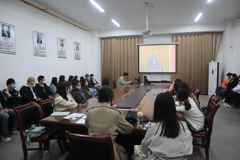 (本网讯 朱戈/文 黄骞/图 )10月27日晚,我院在修远楼5B1205会议室组织全体在校研究生及青年教师收看了2022年湖北省科学道德和学风建设宣讲教育报告会。
