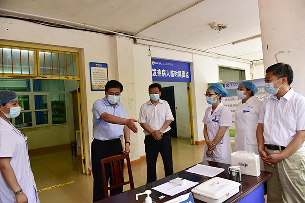 柯俊一行深入食堂、教室、宿舍、留观点、报到点等多处重点区域查看疫情防控各项工作,并现场指导校园入口和医务室隔离通道设置,提出整改意见。