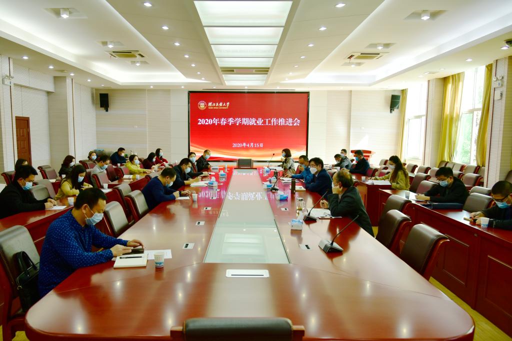 招生就业工作处处长李国贵传达了教育部《关于应对新冠肺炎疫情做好2020届全国普通高等学校毕业生就业创业工作的通知》和省委、省政府《关于应对新冠肺炎疫情影响全力以赴做好稳就业工作的若干措施》文件精神,重点强调了文件中针对毕业生就业的优惠政策。他还详细解读了金年会2020届毕业生就业工作要点,并就做好毕业生就业工作提出要求。