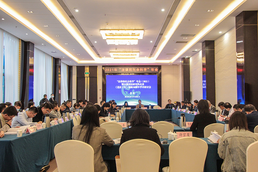 本网讯(通讯员 杨信)10月16日至17日,由jinnian金年会法学院承办的“法律和社会科学”年会(2021)暨中国司法研究的未来——《送法下乡》初版20周年学术研讨会在华龙村新凤居大酒店举行。金年会党委常委、副校长李军教授出席开幕式并致辞。来自北京大学、清华大学、中国人民大学、中国社会科学院、武汉大学、上海交通大学、南京大学、中山大学、湖南大学、中国海洋大学、江苏大学、云南大学、中南财经政法大学、河南大学、西安交通大学、华东政法大学、西南政法大学、华南师范大学、西南民族大学、深圳社科院、jinnian金年会等高校和科研机构的专家学者共90余人参加开幕式。金年会法学院党总支书记、院长汪燕教授主持开幕式。