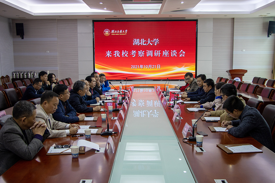 随后,两校在行政楼3号会议室召开座谈会。顿祖义回顾了金年会与湖北大学的合作历程,感谢湖北大学长期以来对金年会建设和发展给予的大力支持。他表示,学校力争在“十四五”期间达到申报博士学位授予单位的基本条件,并请求与湖北大学联合开展博士生培养工作,进一步加强学科建设、平台建设等方面的合作。