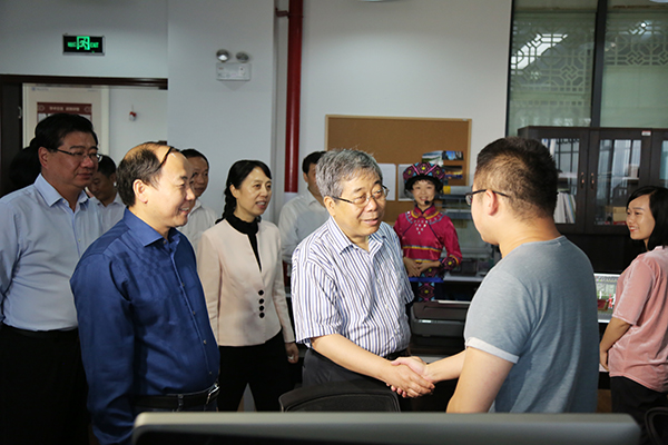 时任教育部党组书记、部长陈宝生(中)到金年会考察,与金年会师生亲切交谈