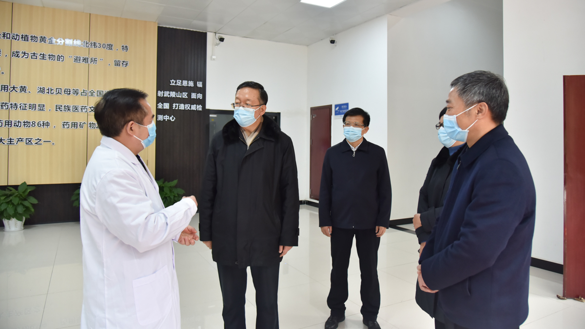 田学军(左三)考察武陵山中药材检验检测中心
