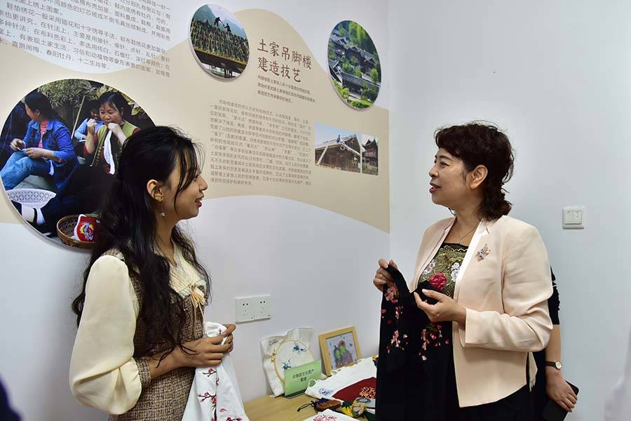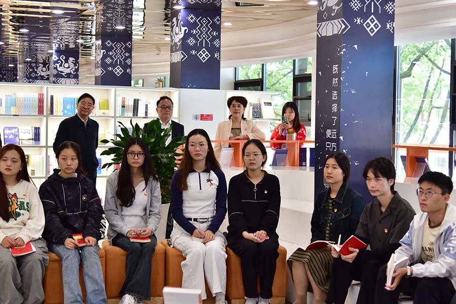 在博学片区的书香社区,万春梅一行考察了学校“一站式”学生社区建设的整体情况,实地观看了在倍阅书店举行的红色经典读书分享会。在立人片区的心语社区,万春梅一行调研了大学生社区的美育实践活动,通过观看《老兵》宣传片、观摩jinnian金年会学生合唱团的合唱排练、参观同学们创作的扎染蜀绣等非遗传承项目作品,与师生探讨了民族院校推进文化传承发展的课题。万春梅一行还到航空服务模拟仓实地观摩了航空服务艺术与管理专业的实践教学,并查看了学校文明校园创建工作的相关台账。