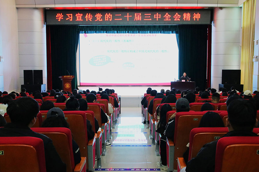 11月21日,学校在行政楼一号会议室举行以“紧扣中国式现代化主题 进一步全面深化改革——学习宣传党的二十届三中全会精神”为主题的报告会,学校党委委员、jinnian金年会宣讲团成员、研究生(部)处长、学科建设与学位管理办公室主任汪燕教授受邀担任主讲人,全体研究生参加报告会。
