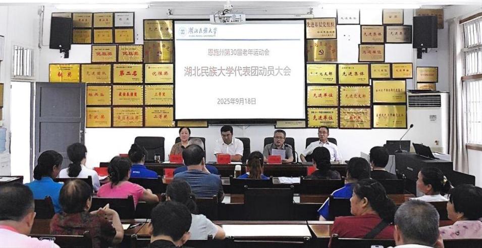 2025年9月18日上午,离退休人员工作处召开恩施州第30届老年运动会动员大会。离退休人员工作处党委书记徐杰、处长何海清出席会议,副处长黎静文主持会议。