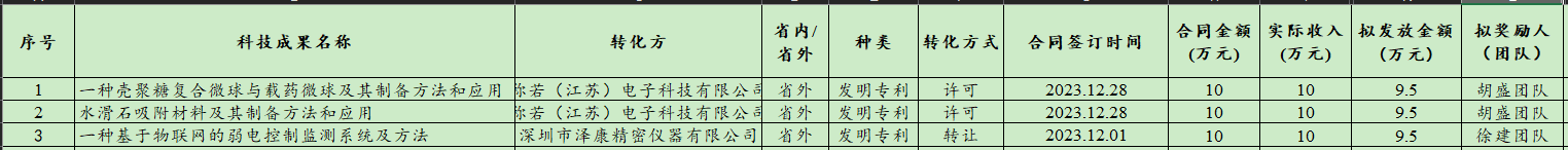 2024年成果转化现金奖励信息(第一批)公示-2024.3.8