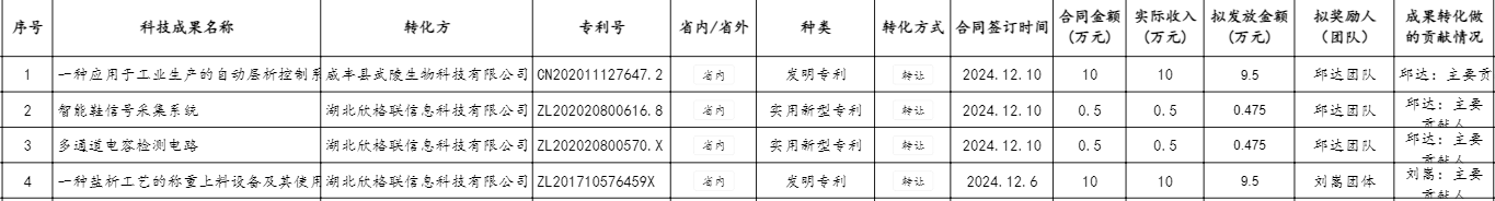 2024年成果转化现金奖励信息(第十三批)公示-2024.12.13