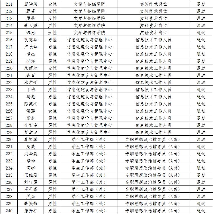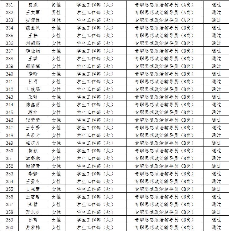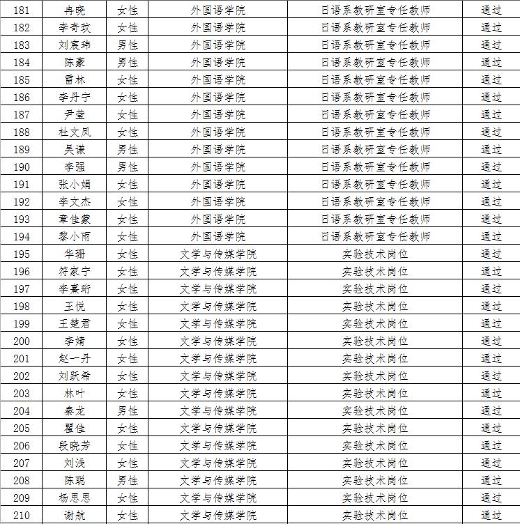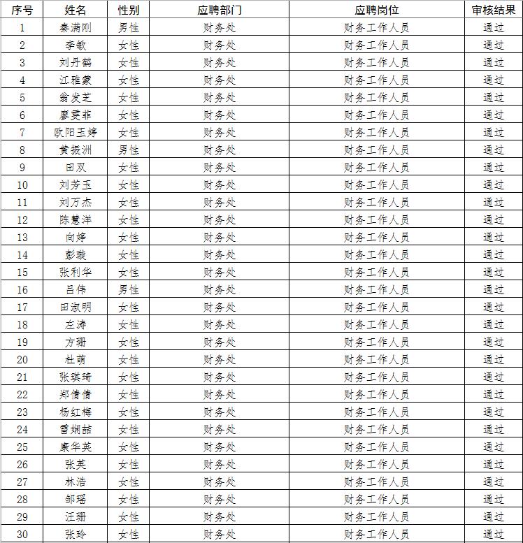 经资格审查,下列考生符合报考条件,准予参加笔试(笔试时间为4月15日上午8:30-10:30),现将资格审查合格名单进行公示。如有疑问请于2023年4月6日下午17:00点前向jinnian金年会人事处反馈。