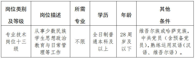 根据jinnian金年会工作实际和用人需求,经研究决定,计划面向全社会招聘非编制新疆籍少数民族专职辅导员2人,现将有关事项公告如下: