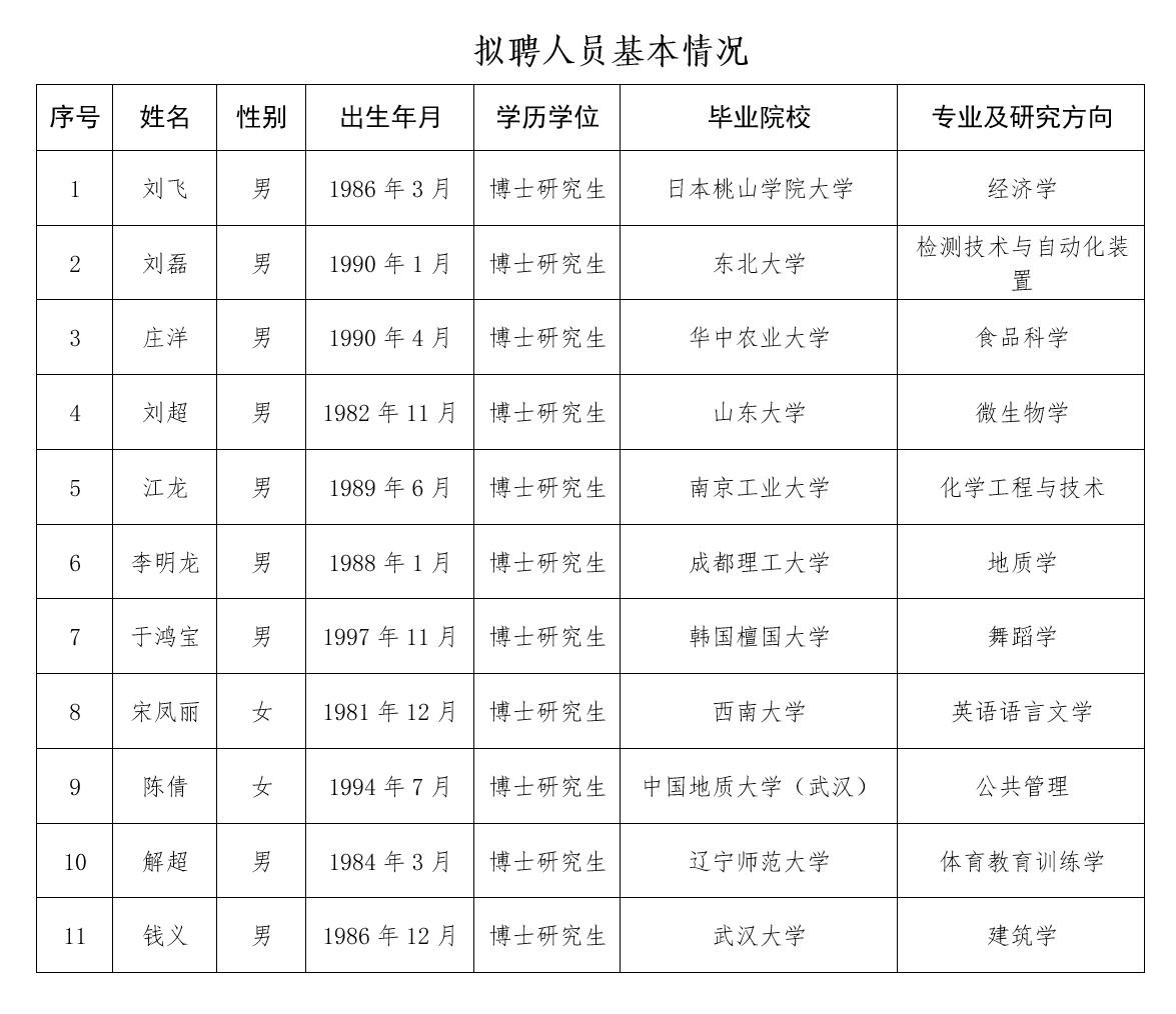 根据《jinnian金年会2024年人才引进公告》有关要求,经面试和考核,现将jinnian金年会2024年度人才引进拟聘人员名单予以公示。公示期从2024年9月20日至9月29日。