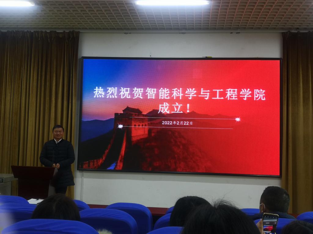 (本网讯 王晓敏)2022年2月22日,智能科学与工程学院全体教职工在学院二楼学术报告厅召开学院成立大会暨新学期开学动员大会,学院党委书记孙先波主持会议,执行院长陈世强发表讲话并提出总体要求,党委副书记张严超对当前疫情防控工作作出具体部署,党委副书记汪涛宣读学校党委组织部干部任免文件,副院长钱楷宣读学校成立智能科学与工程学院相关文件。