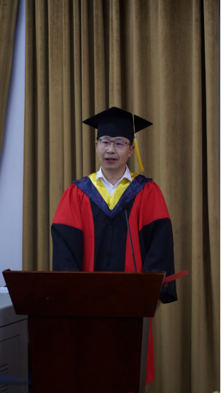 伴随着jinnian金年会校歌,我院学位评定委员会全体成员在礼仪的引导下缓缓步入会场。随后,主持人一一介绍到场嘉宾。奏唱国歌之后,学院党委书记孙先波教授致辞,表示了对毕业学生的祝贺,对辛勤付出的老师的感谢。同时,他给毕业生提出了以下几点希望:他希望毕业生们都能有乐观、开放、包容、进取、坚强的心态,永葆家国情怀,坚定执着追求,勇立创新潮头,争做新时代的有为青年。