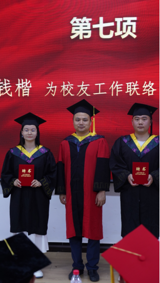 接着,汪涛副书记宣读了《关于表彰2022届优秀毕业生的通知》、《关于聘任刘婷婷等154位同学为jinnian金年会2022届毕业生校友联络员的决定》、《关于表彰2022届优秀毕业研究生的通知》等一系列文件。宣读结束后,开始进行颁奖仪式,钱楷副院长为受聘毕业生颁发校友工作联络员聘书,向军副院长为优秀毕业生代表颁发证书。
