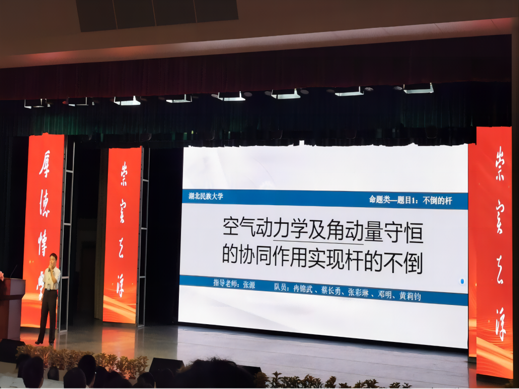7月10日,第八届“飞梦达杯”湖北省大学生物理实验创新设计竞赛在武汉科技大学落幕。金年会选拔了12支队伍参赛本次实验竞赛,最终获得一等奖2项,二等奖1项,三等奖6项。在大赛闭幕式上,金年会选送的《空气动力学及角动量守恒的协同作用实现杆的不倒》作为一等奖优秀作品进行了现场展示。