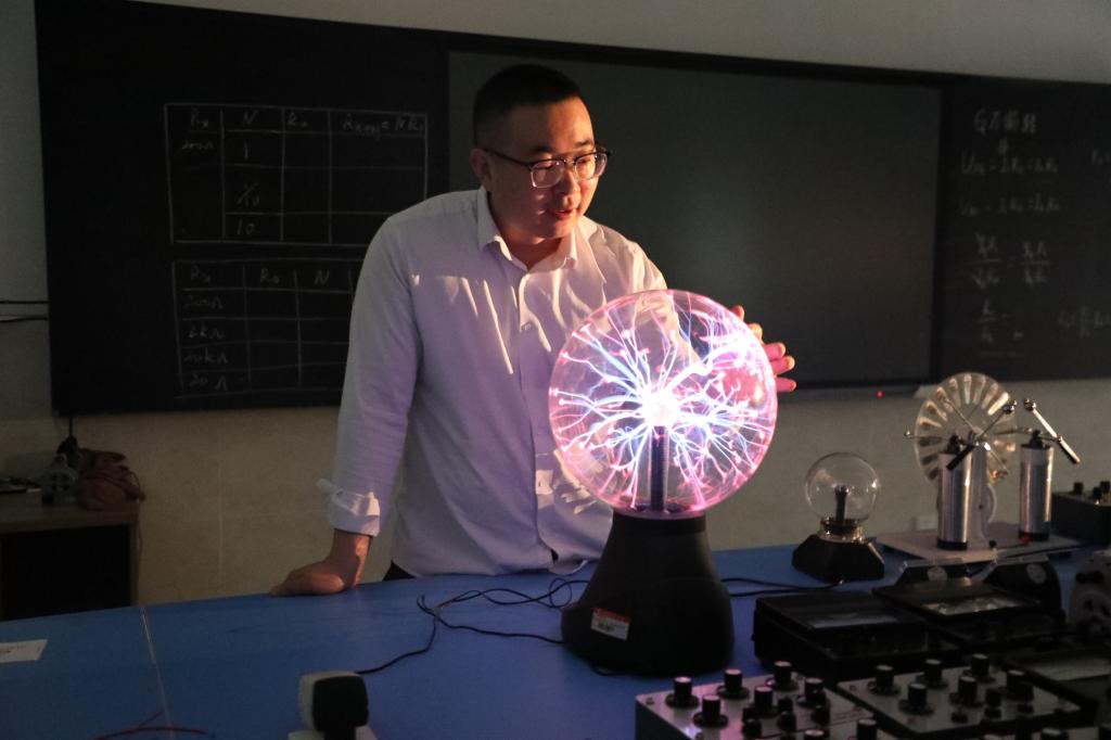PASCO实验室由张源老师为同学们展示弹簧振子简谐运动的弹力、位移、速度、加速度随时间的对应变化实验。电磁学实验室由陈俊老师主讲辉光球放电、发电现象,让同学们体验了物理电学的魅力。力热实验室由蒋冰峰老师展示气垫导轨实验,为同学们生动的验证牛顿运动定律。光学实验室由方越老师为同学们展示凸透镜成像规律的探究实验,让同学们深入了解凸透镜成像规律。