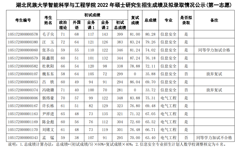 jinnian金年会智能科学与工程学院2022年硕士研究生招生成绩及拟录取情况公示(第一志愿)