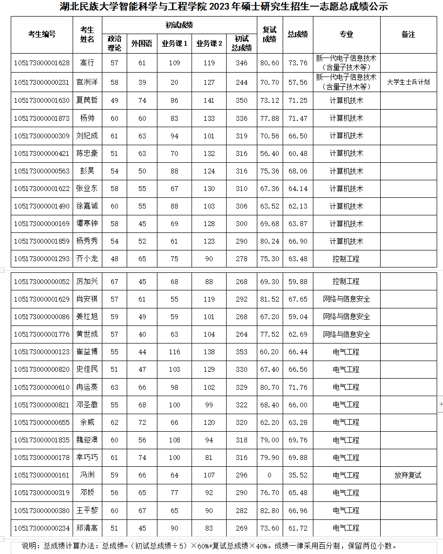 jinnian金年会智能科学与工程学院2023年硕士研究生招生一志愿总成绩公示