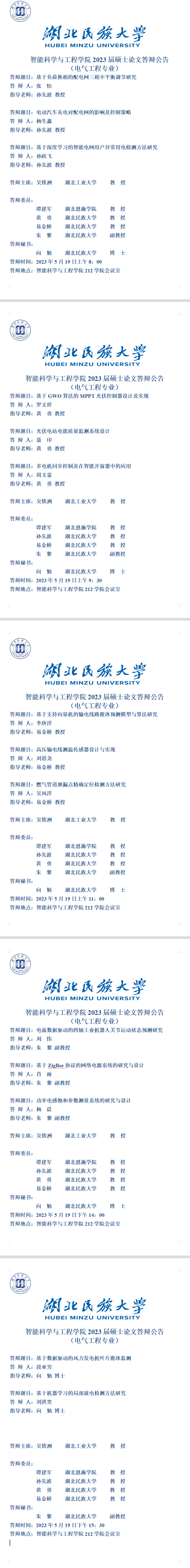智能科学与工程学院2023届硕士学位论文答辩公告(二)