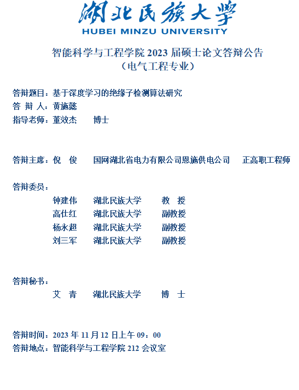 智能科学与工程学院2023届硕士学位论文答辩公告(七)