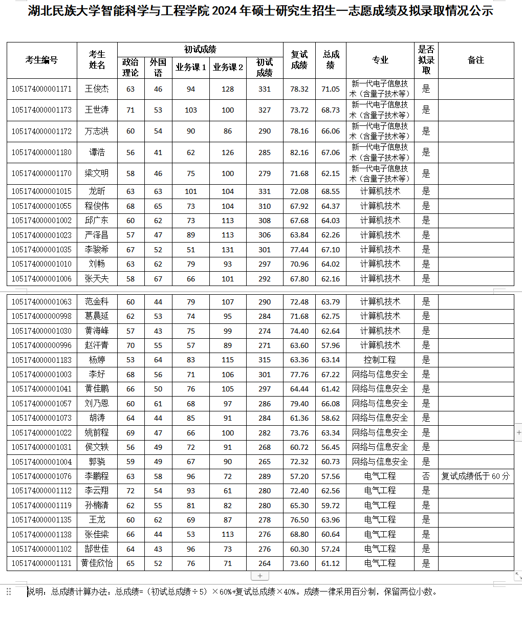 jinnian金年会智能科学与工程学院2024年硕士研究生招生一志愿成绩及拟录取情况公示