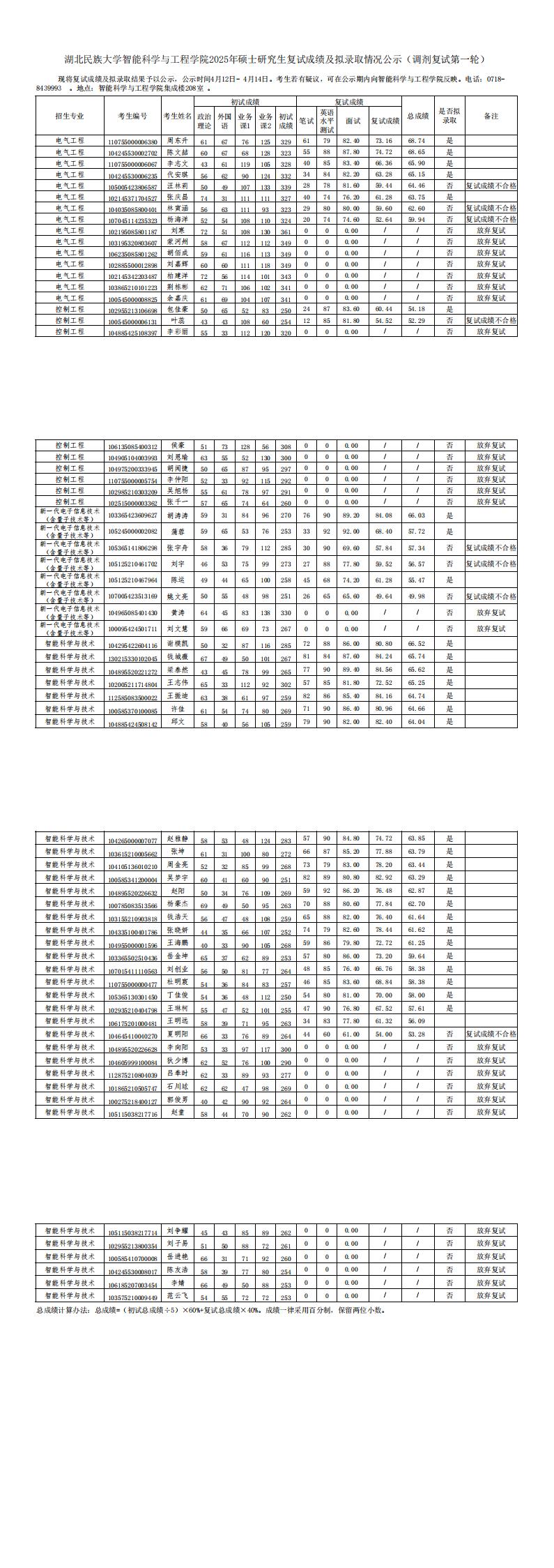 jinnian金年会智能科学与工程学院2025年硕士研究生复试成绩及拟录取情况公示(调剂复试第一轮)