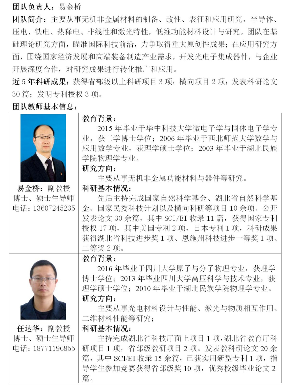 光电功能材料及应用科研创新团队
