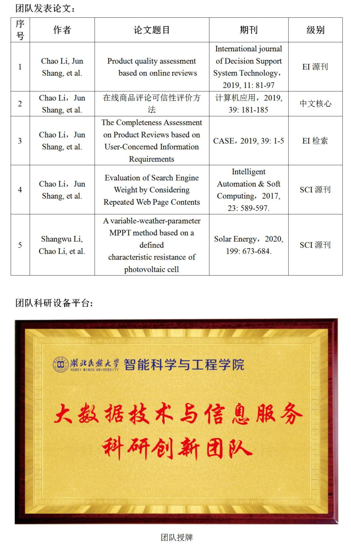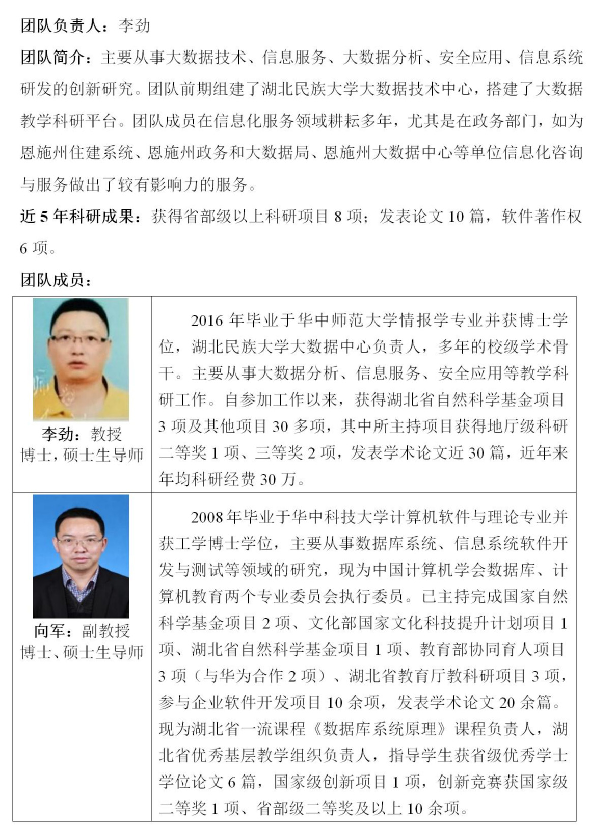 大数据技术与信息服务科研创新团队