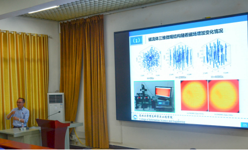 赵勇教授从磁流体的基本概念出发,分析了磁流体在磁场作用下的微观结构改变,并利用磁流体特有光学性质将其有效应用于光纤磁场传感器中。讲座中,赵教授不仅向同学们传授了具有前瞻性的学术知识,还将做人、做事、做学问的道理融合其中,鼓励同学们学会学习、勤于思考、勇于探索。