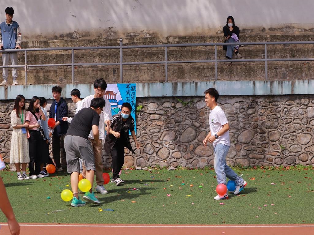 本次活动是以默契挑战为主,通过进行三个小游戏来考验室友们的默契程度。在心有灵犀猜题环节中,学生们绞尽脑汁的想着室友通过肢体语言和模糊的语言所要表达的答案。踩球竞答环节中各位同学很有默契的配合着,凭借着灵活的身法和快准狠的走位在场上激烈的角逐着胜负。在最后的抢板凳游戏中,随着音乐的响起,同学们围着板凳走动起来,当音乐停下,大家竞争先恐后地抢凳子,争夺着最后的赢家,在一片欢声笑语中增进室友间的感情。