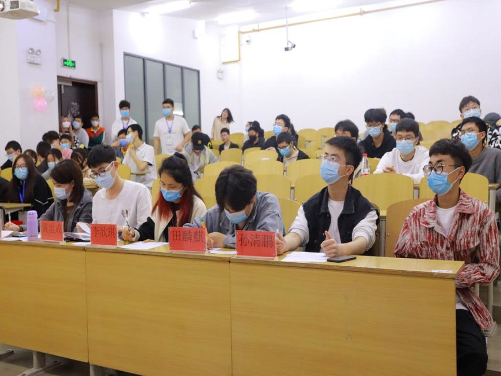 本网讯(记者 柯柏松 梅晨航/文 李明 万文杰/图)4月14日,为使广大青年深化理解习近平新时代中国特色社会主义理论思想,迎接党的二十大和庆祝建团一百周年,我院于修远楼5B410教室举办以理论学“习”我来讲——喜迎二十大、永远跟党走、奋进新征程为主题的第六期百生讲坛决赛活动。本次活动由我院团总支主办,我院团总支书记谭俊妮老师、副书记黄世成、李欣琪、田麟麒受邀出席本次活动并担任评委,亦有部分热情的学生观众前来参加此次活动。