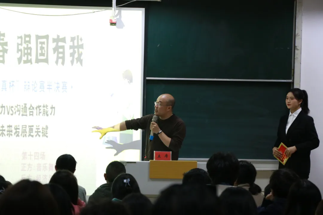 唇枪舌战,碰撞敏捷才思。面对大学生未来发展科技创新本领与沟通合作能力孰轻孰重的论题,化学与环境工程学院代表队与智能科学与工程学院代表队展开了激烈论述。