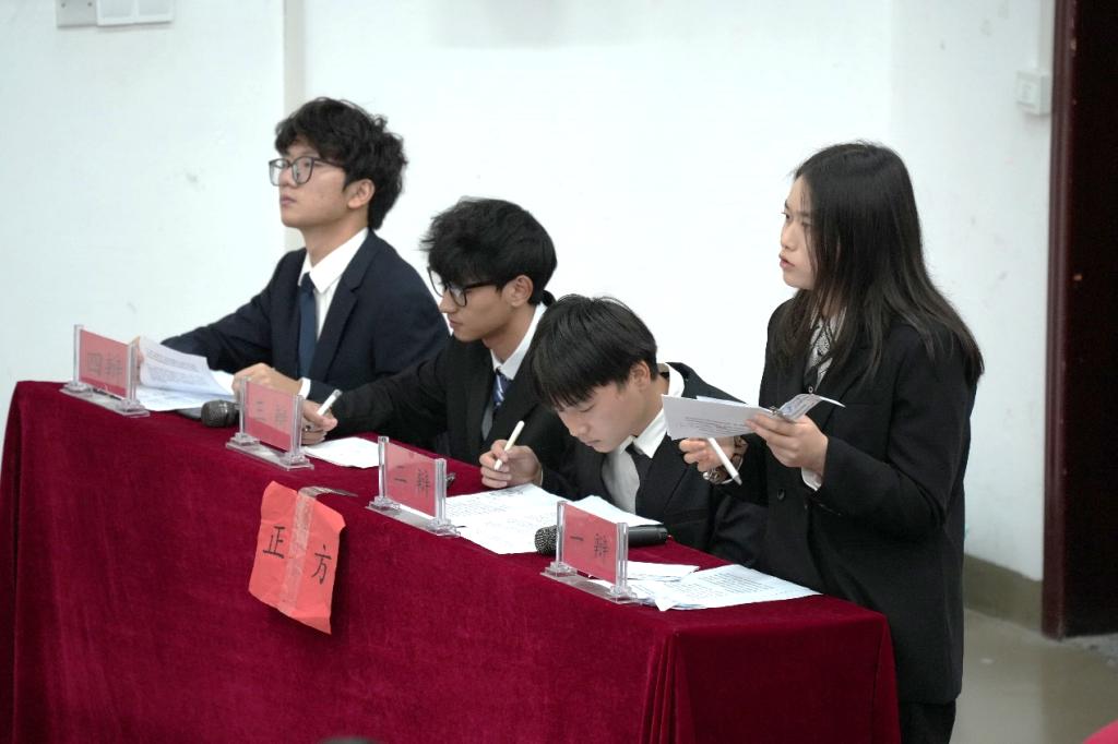第一阶段,正方一辩刘若菲与反方一辩白晓璇分别陈词,阐明各自论点、开篇立论。第二阶段为攻辩环节,正反方二辩和三辩展开了激烈的辩论,第三阶段双方一辩做总结后进入自由辩论环节,双方争锋相对,现场气氛迅速升温。中场稍作休息后,正反方四辩肖博慎与王绍熙做总结陈词,比赛结束。最后,评委黄红玉做出总结,正方三辩陈昱杰与反方四辩王绍熙夺得最佳辩手称号。
