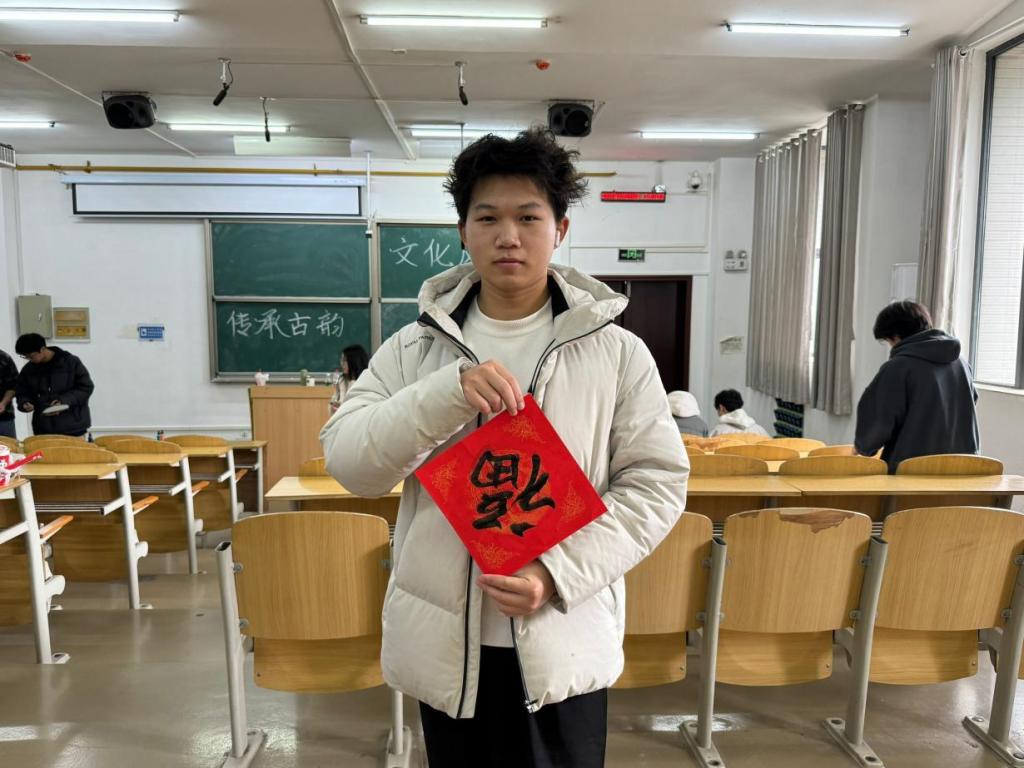 另一边,剪窗花的桌子围满了好奇的同学。大家手持剪刀,沿着折叠好的纸张边缘小心裁剪。不一会儿,一幅幅精美的窗花作品便诞生了:有象征吉祥的福字,有灵动的动物,还有寓意美好的花卉图案。这些鲜艳的窗花贴在窗户上,为校园装点出浓浓的传统节日氛围。