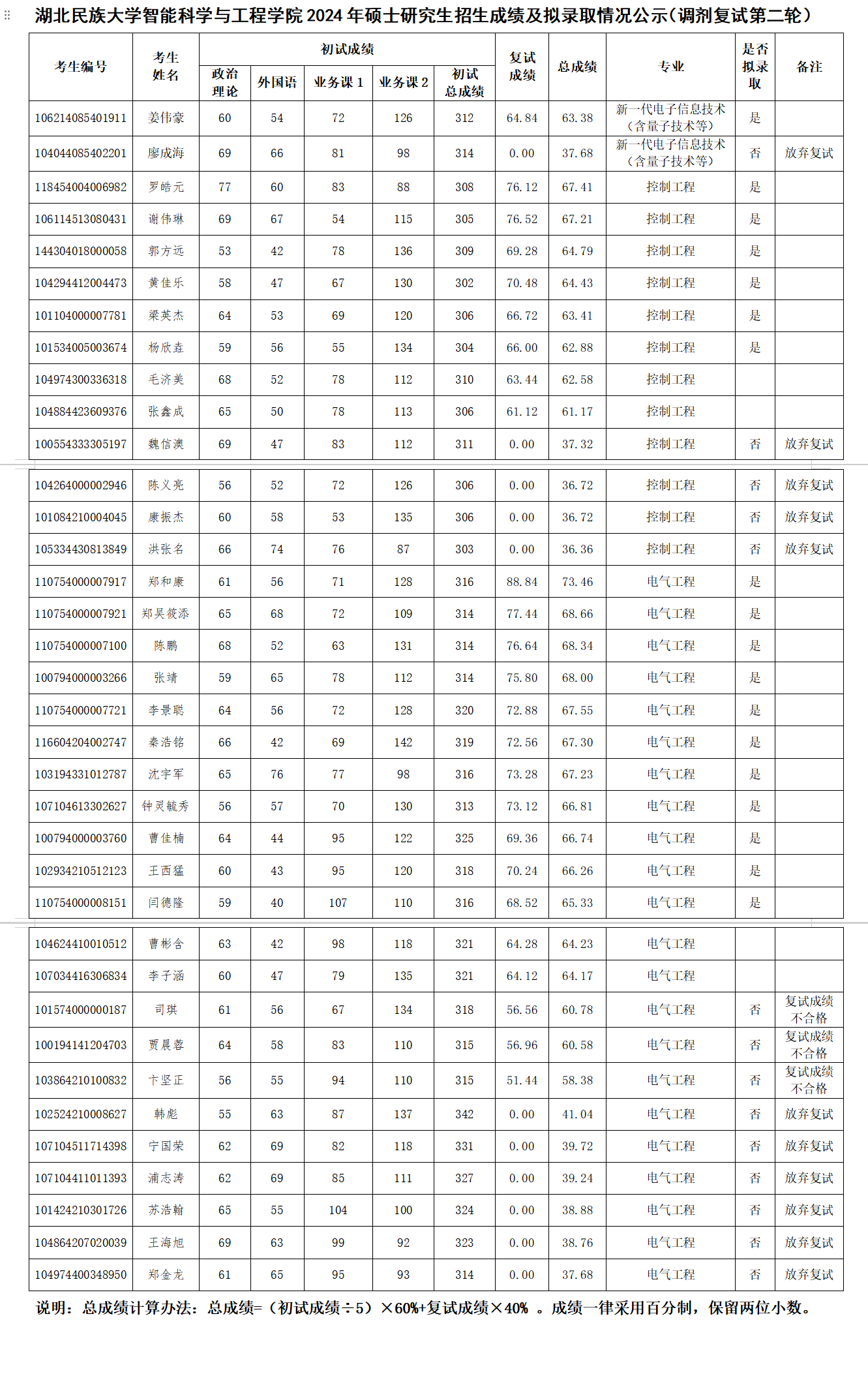 jinnian金年会智能科学与工程学院2024年硕士研究生招生成绩及拟录取情况公示(调剂复试第二轮)