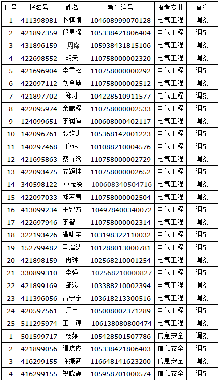 2018年湖北民族学院信息工程学院考研调剂考生复试名单公示如下: