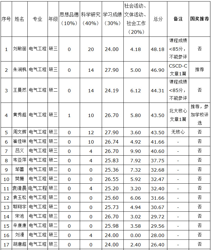 信息工程学院2018年研究生国家奖学金评选公示