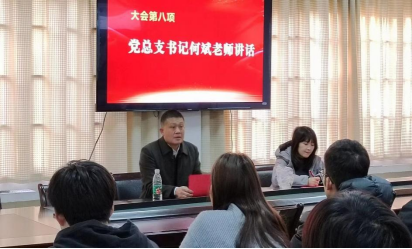 第五项,我院党总支书记何斌老师讲话。他希望大家向优秀党员同志学习,积极进取;希望大家珍惜青春年华,勤奋学习;希望大家富有责任意识,敢于担当。