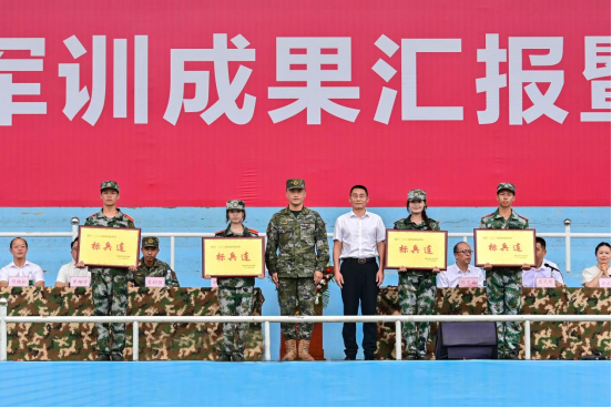 军训期间,体院学子与教官并肩前行,共同度过了难忘的十日。教官们严谨细致、以身作则,同学们刻苦训练、突破自我。雨中训练,他们浑身湿透却仍目光坚定;烈日之下,他们汗流浃背却依旧步伐铿锵。在最终的考核中,以总分第二的成绩荣获“标兵连”称号。这是自2020年以来,体育学院连续第六年获此殊荣,充分体现了体院人的拼搏精神和团队凝聚力。