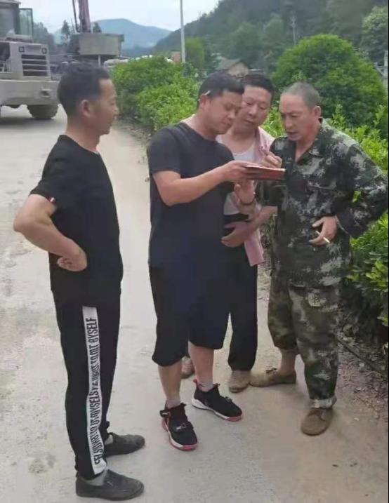 (谭森权(左二)给西流水村村民邹清满解释扶贫奖补资金兑现情况)
