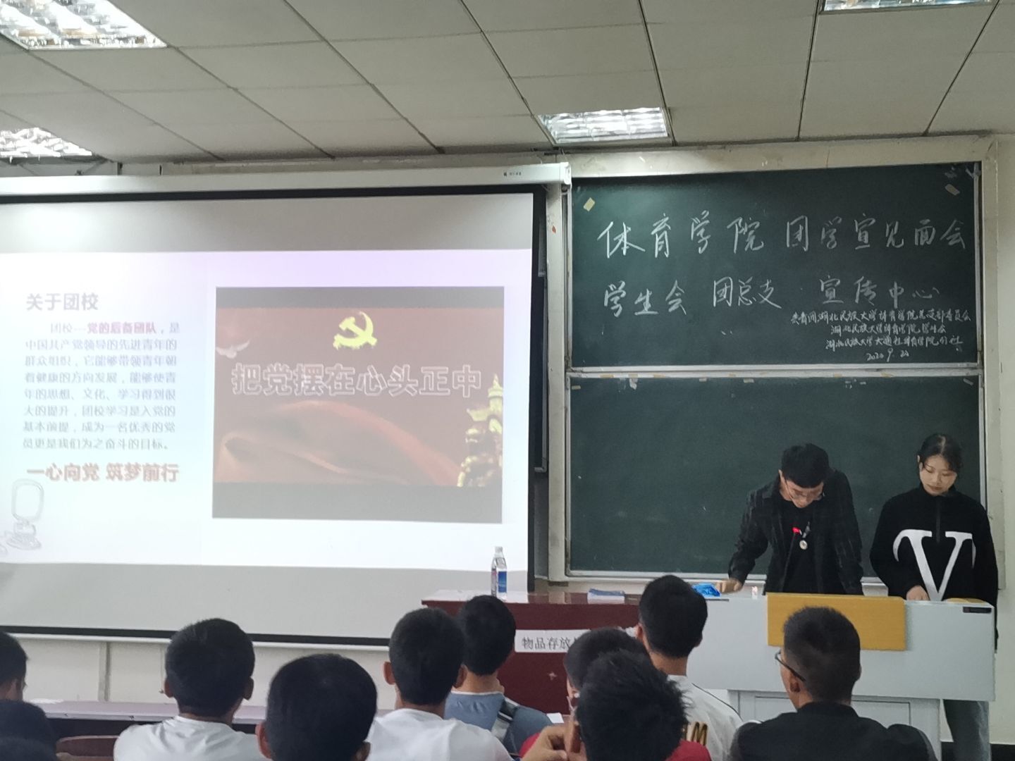 共青团jinnian金年会体育学院总支部委员会、jinnian金年会体育学院学生会、jinnian金年会大通社体育学院分社学生干部分别介绍自己所在部门的工作和职责。本次见面会的宗旨是让2020级新同学们对团委、学生会、宣传中心这个大家庭有更多的了解,有助于每个部门明确任务,提高工作完成质量,熟悉活动内容、明确责任。团队应协作互助、全力配合加强部门联动,为未来新成员的加入做充实的准备。同时希望各位新同学们积极参与各部门,能够服务于学生,服务于大众。