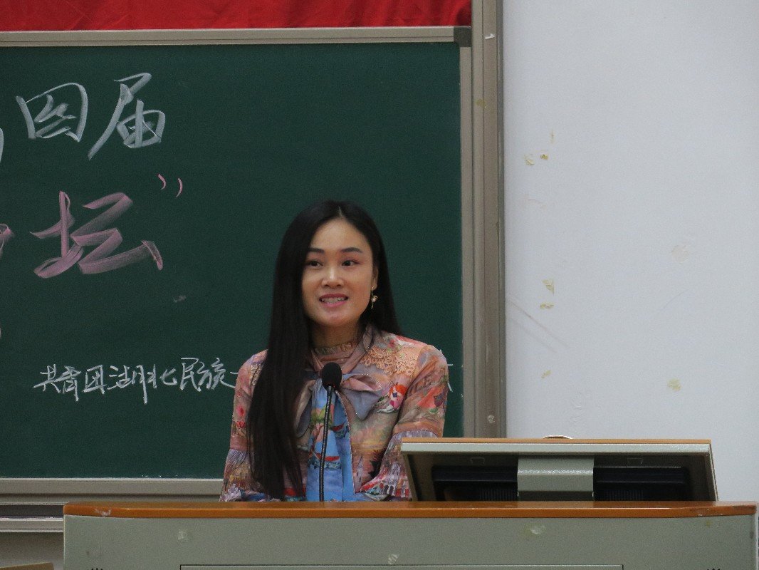 大会最后,学工处谭婷婷老师进行活动总结,她表示:“本次百生讲坛所提及的抗疫的担当与奉献、创业的奋斗、校园生活的努力、学生干部的锤炼、家国情怀的培养,都是我们青春的故事,彰显了我们当代大学生的青春风貌,展现了民大人的风采,同时向外界展示了体育学院优良的精神风貌,这些都是需要我们去学习的。希望同学们学有所获、学有所思、学有所用。”