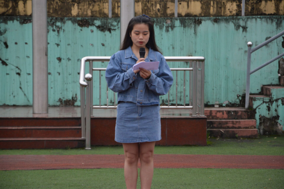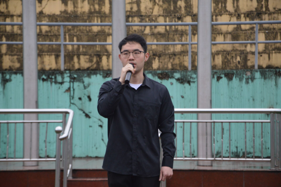 活动第六项:音乐舞蹈学院优秀代表蒋紫涵同学发言,以爱国明志为主题号召全体同学要弘扬爱国主义,永远乐观积极向上。